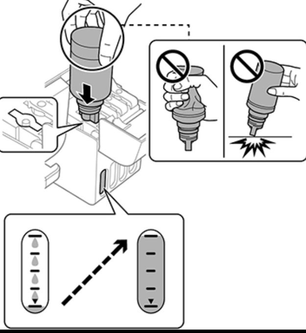 - Setelah mengisi, tutup kembali tangki tinta dan biarkan printer melakukan proses otomatis jika ada. Contoh: tekan tombol stop selama 5 detik untuk memulai pengisian/ch-arge tinta. Epson Support+1