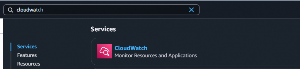 - Masuk ke dashboard AWS lalu cari CloudWatch dan klik